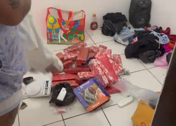 Durante as buscas realizadas na residência do investigado, foram encontrados 26 tabletes contendo maconha prensada, aproximadamente 30 quilos do entorpecente, balança de precisão, pinos utilizados para armazenamento de cocaína, todos esses materiais serão submetidos à perícia. O material ilícito foi apreendido para os procedimentos legais cabíveis.